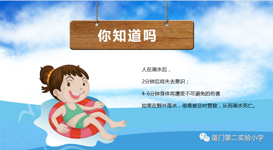随着炎热的夏天到来,因孩子们冒险玩水导致溺水身亡的惨痛事件时有发生。溺水,已是孩子的头号杀手,防溺水教育已刻不容缓。为了孩子们的健康成长,我们迫切希望各位家长积极配合,履行孩子的监护人职责,不论你有多忙,请时刻把孩子的安全教育放到首位,认真做好安全教育工作。现将有关知识嘱咐如下: